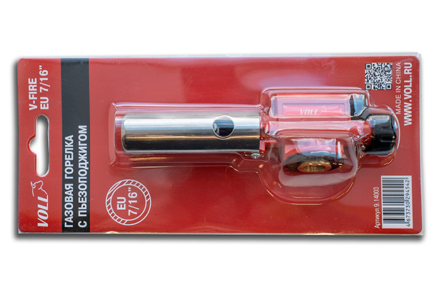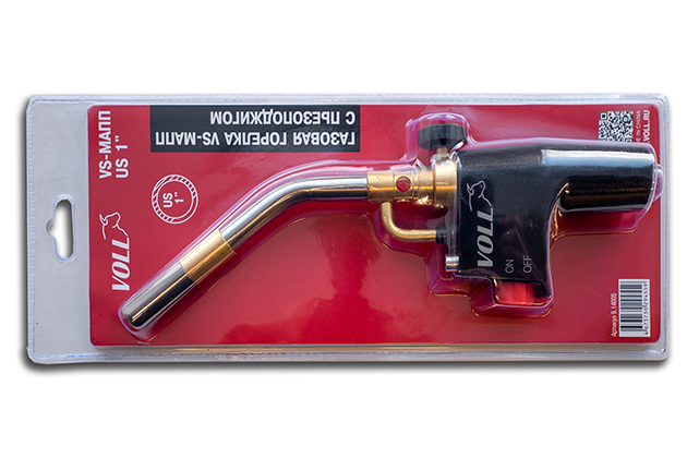Газовая горелка VS-МАПП US 1" c пьезоподжигом для пайки твёрдым припоем D до 28 мм и мягким припоем D до 35 мм.