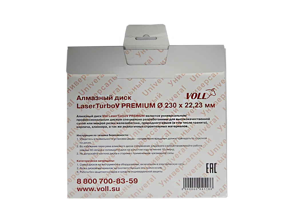 Алмазные диски VOLL LaserTurbo V PREMIUM диаметром 230 мм имеют очень высокие производительность и стойкость.