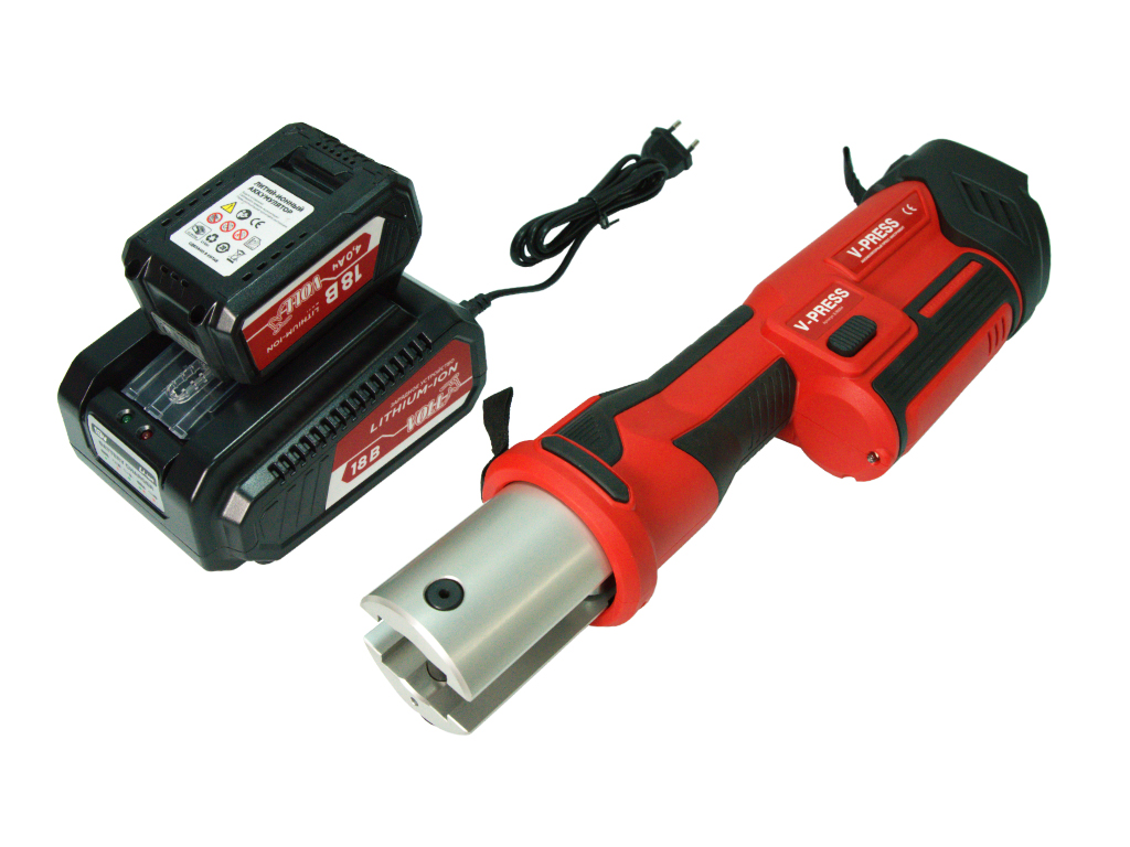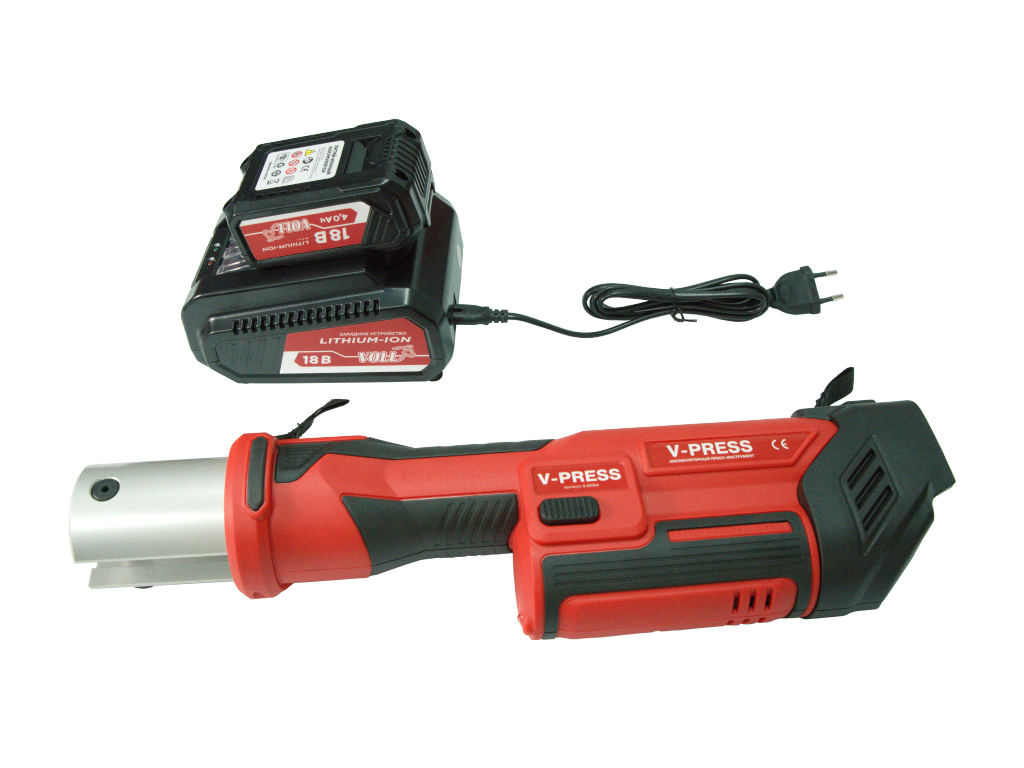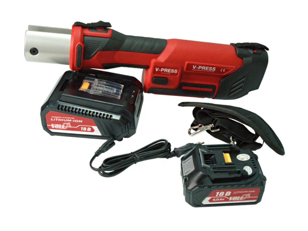 Набор аккумуляторного гидравлического пресс-инструмента VOLL V-PRESS в пластиковом чемодане без пресс-клещей.