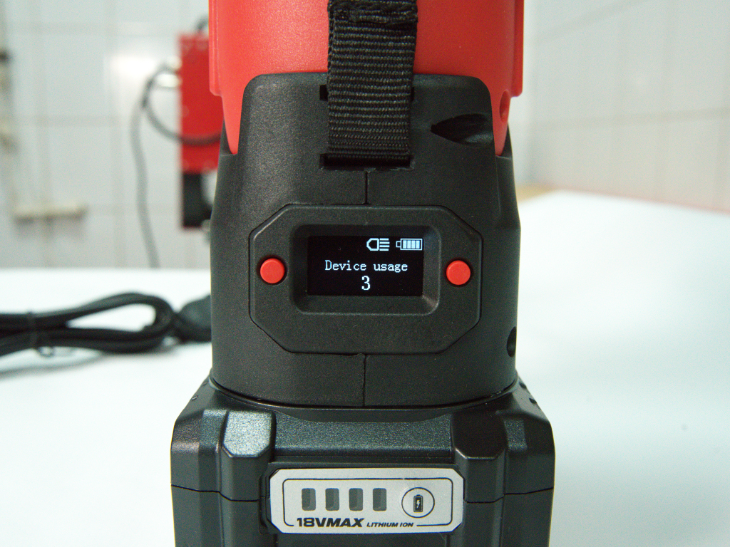 - OLED-дисплей данных для отображения процента заряда батареи, времени нажатия, кода неисправности;