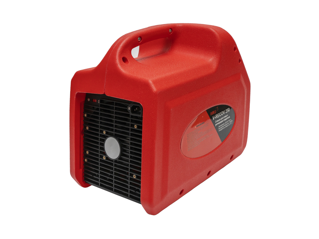 Станция для слива и регенерации хладагента VOLL V-RECOV 250, 3/4 НР оборудована защитой по высокому давлению и автоматически отключается при достижении давления в линии нагнетания 38,5 бар. Защита по низкому давлению отсутствует, поэтому при уходе станции в вакуум её нужно останавливать вручную. В станции установлен безмасляный компрессор воздушного охлаждения с 1 клапаном.