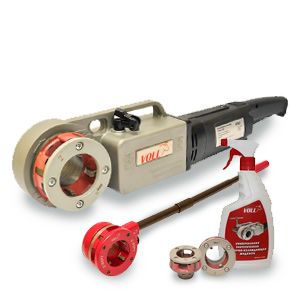 - Электрические. Такие клуппы максимально функциональны и удобны при работе с резьбой всех типов. Используя их, вам не нужно прилагать физические усилия. Нарезка резьбы может быть выполнена в кратчайшие сроки. В составе инструмента есть струбцина, которая позволяет обеспечить надежное крепление труб и исключить риски их проворачивания.