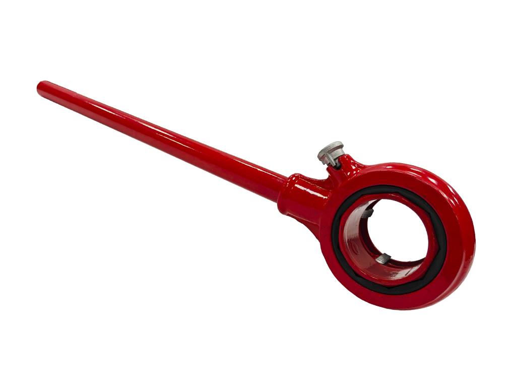 ремонтных бригад, а также для частных мастеров. Резьбонарезной клупп имеет легкую и прочную трещотку с реверсом, разборную рукоятку.