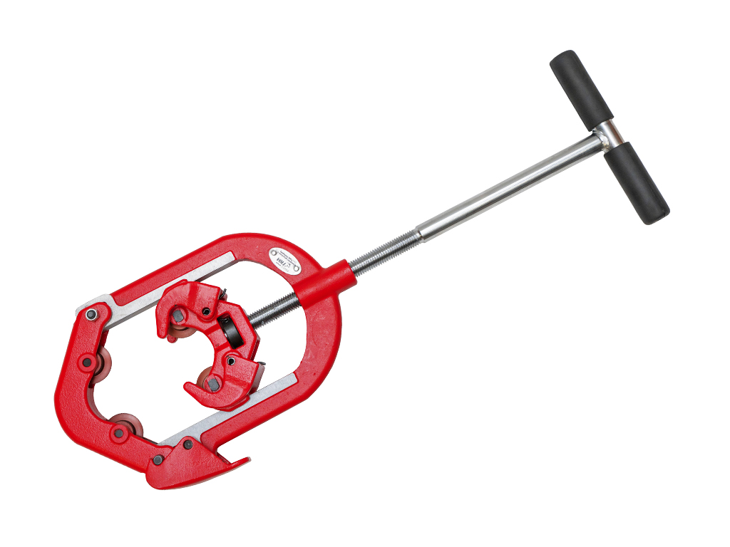 - Благодаря четырем специальным роликам труборез с легкостью режет сталь, а так же нержавеющую сталь, литую и кованную сталь.