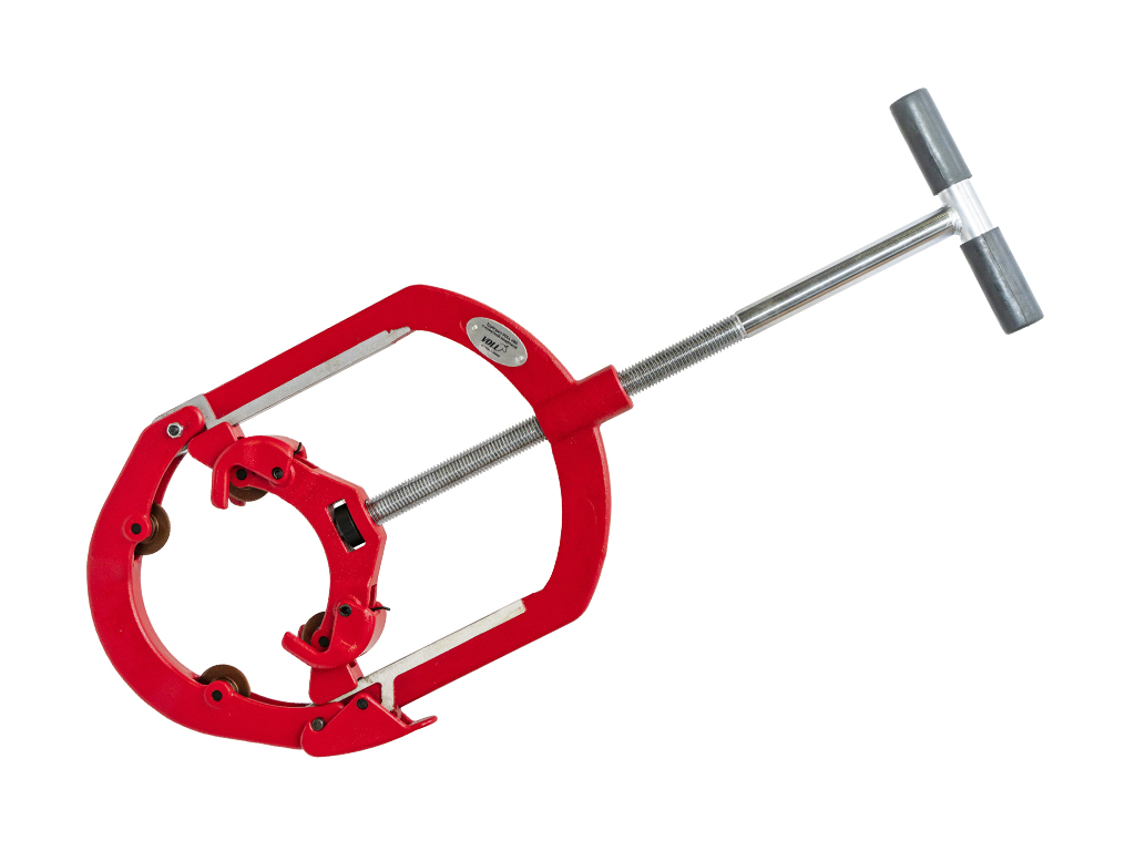 Труборез VOLL V8S с хомутной защелкой предназначен для резки стальных труб диаметром от 6" до 8" дюймов (168 мм-219 мм).