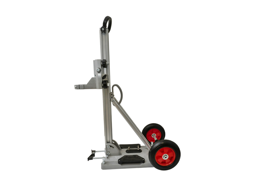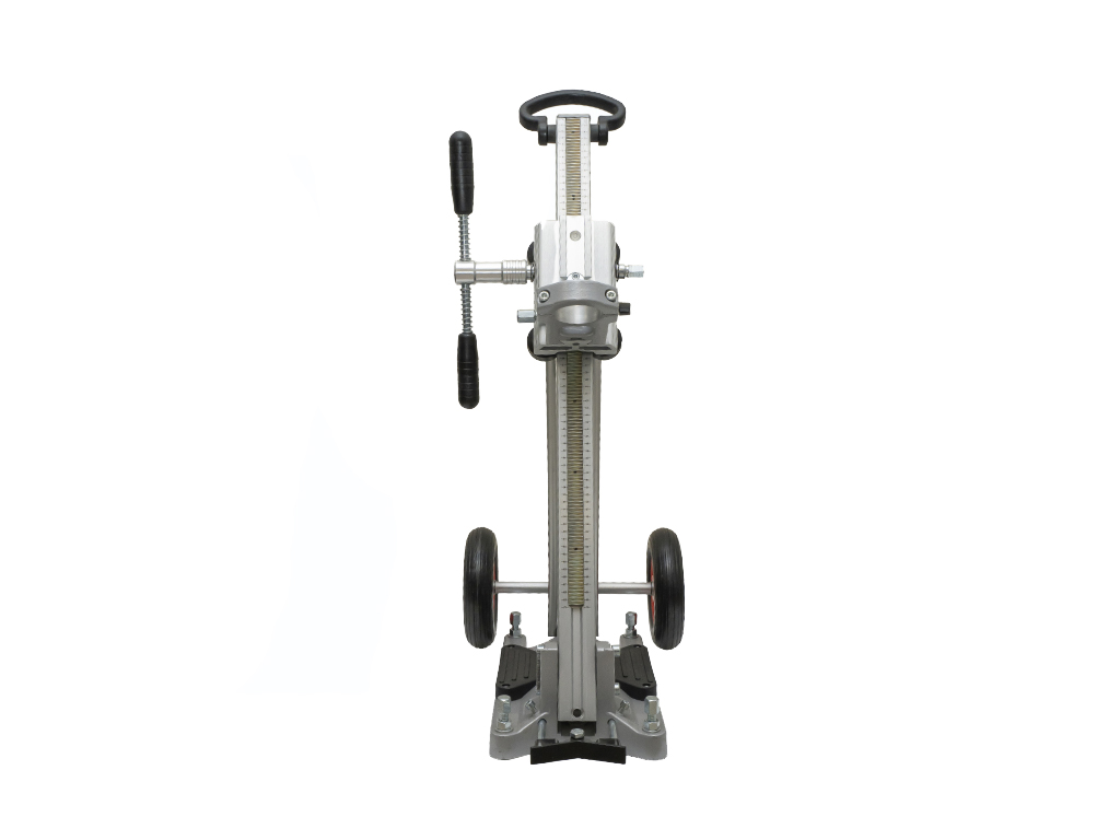 вспомогательным упором для забуривания, большими транспортировочными колесами и быстросъемным креплением электробормотора.